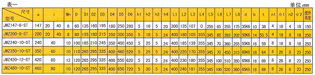 蝸輪蝸桿減速機(jī)規(guī)格主要有JWZ200\JWZ2410\JWZ350\JWZ460等,根據(jù)澄清池大小選擇合適的蝸輪箱。以下數(shù)據(jù)僅供參考:
