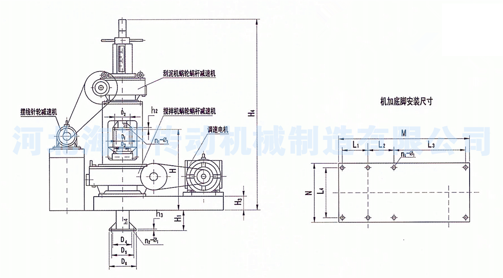 JWZ刮泥機(jī)驅(qū)動(dòng)裝置采用單級(jí)蝸桿蝸輪減速傳動(dòng),可由