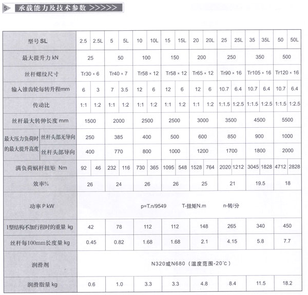 SL錐齒輪升降機(傘齒輪絲桿升降機)主要特點有:效率高、使用壽命長、容易調整減速比。同時具有結構緊湊、體積小、重量輕、動力源廣泛、無噪音、安裝方便、使用靈活、功能多、可靠性高等許多優(yōu)點。具有提升、降落、推進、翻轉等多功能、能按一定程序準確地控制調整提升或推進的高度。可以用電動機或其他動力直接帶動。也可以手動。最高輸入轉速500r/min,最高提升速度2.7m/min。有不同的結構型式方式,提升高度按用戶的要求制造。該裝置可自鎖。