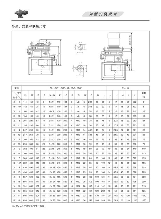 減速機(jī)|擺線針輪減速機(jī)-B、X系列擺線針輪減速機(jī)外型安裝尺寸-海洋傳動(dòng)