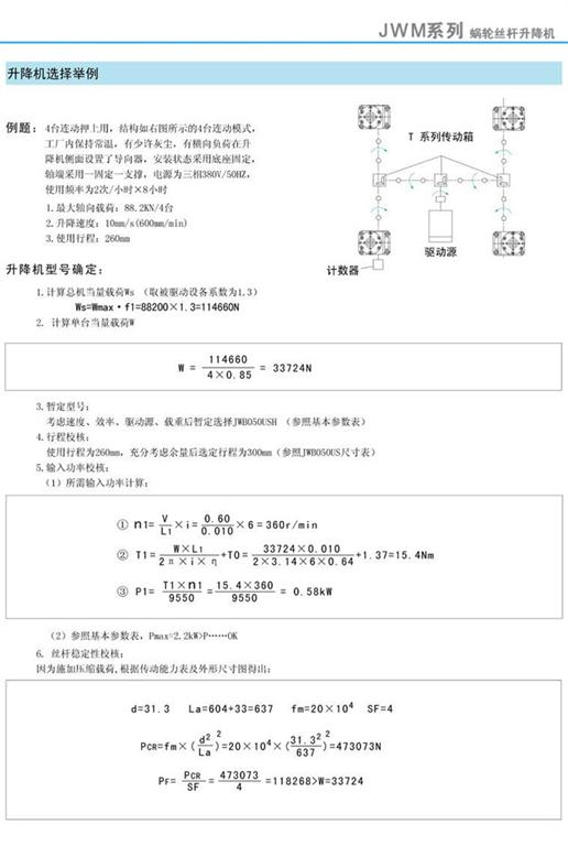 減速機(jī)|蝸輪絲桿升降機(jī)-JWM蝸輪絲桿升降機(jī)選擇舉例-海洋傳動