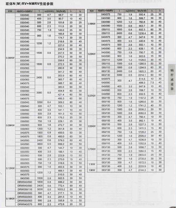 NMRV130減速機蝸桿副參數