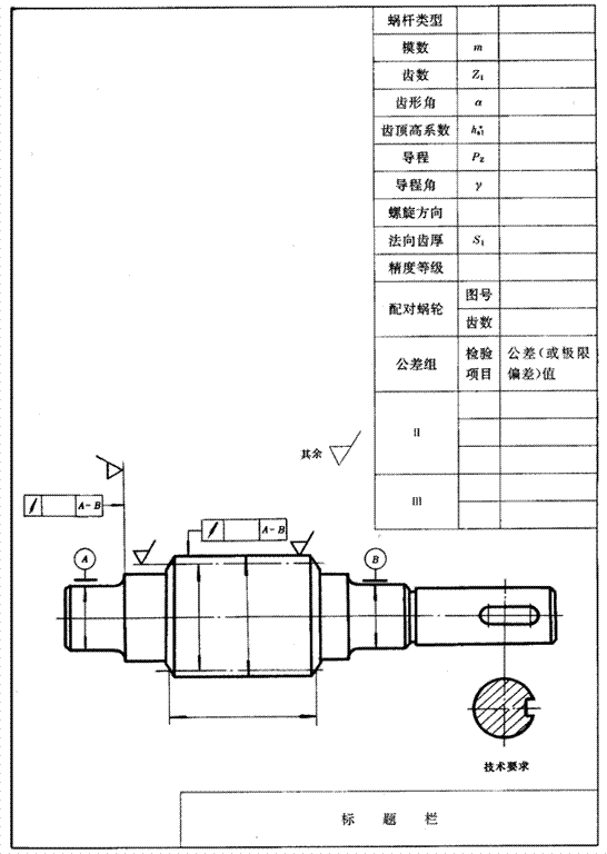 5.4作為檢驗輪齒加工精度的基準,需給出基尺寸數(shù)據(jù)和形位公差,如蝸桿、蝸輪的頂圓柱面,蝸桿中心孔等。